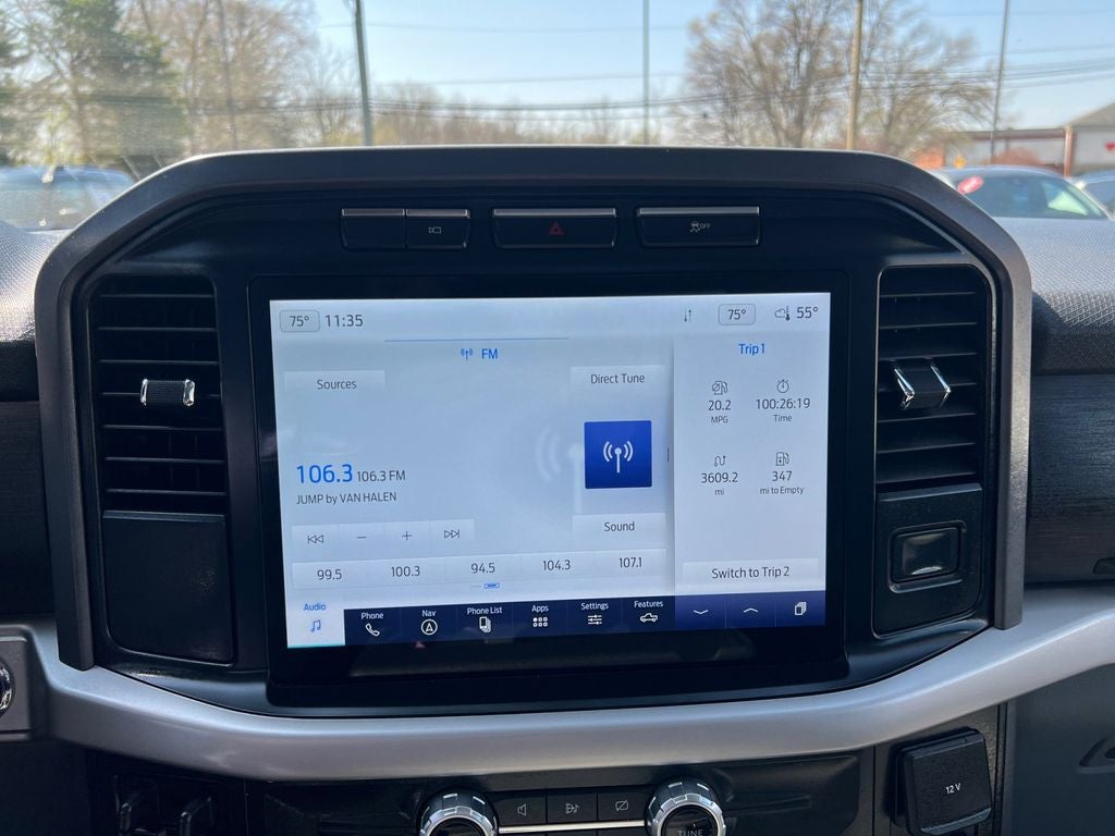 - This 2022 Ford F-150 XLT SuperCrew 4x4 is a sharp, capable full-size truck finished in Carbonized Gray Metallic with a Dark Slate cloth interior. Built on a 145-inch wheelbase, this F-150 combines bold styling, everyday comfort, and serious utility, making it an excellent choice for work, towing, or family use. The XLT Chrome Appearance Package adds extra curb appeal with 18-inch chrome-like PVD wheels, bright polished step bars, and a refined exterior presence. Power comes from the efficient and responsive 2.7L EcoBoost V6 engine paired with an electronic 10-speed automatic transmission, delivering strong acceleration and confident towing capability. Equipped with a Class IV trailer hitch, integrated trailer brake controller, Dynamic Hitch Assist, trailer sway control, and selectable 4x4 shift-on-the-fly, this truck is ready to handle trailers, boats, campers, and changing road conditions with ease. Inside the cabin, you’ll find a spacious SuperCrew layout with comfortable seating and smart technology throughout. Features include dual-zone electronic automatic temperature control, remote start, a power-sliding rear window, SYNC 4 with enhanced voice recognition, built-in navigation, SiriusXM with 360L, and a premium B&O 8-speaker sound system for an upgraded driving experience. The fold-up rear bench seat adds flexible cargo and passenger space when needed. Safety and driver-assist features include BLIS with Cross-Traffic Alert, Lane-Keeping System, Pre-Collision Assist with Automatic Emergency Braking, Reverse Brake Assist, rear parking sensors, a rearview camera, AdvanceTrac with Roll Stability Control, and post-collision braking. Practical features continue in the bed with the Bed Utility Package, which includes BoxLink cargo management, LED box lighting, tailgate step, tie-down hooks, and a drop-in bedliner to help protect the truck bed from daily use. With strong capability, modern technology, and rugged good looks, this 2022 Ford F-150 XLT is a well-equipped truck ready for whatever comes next.