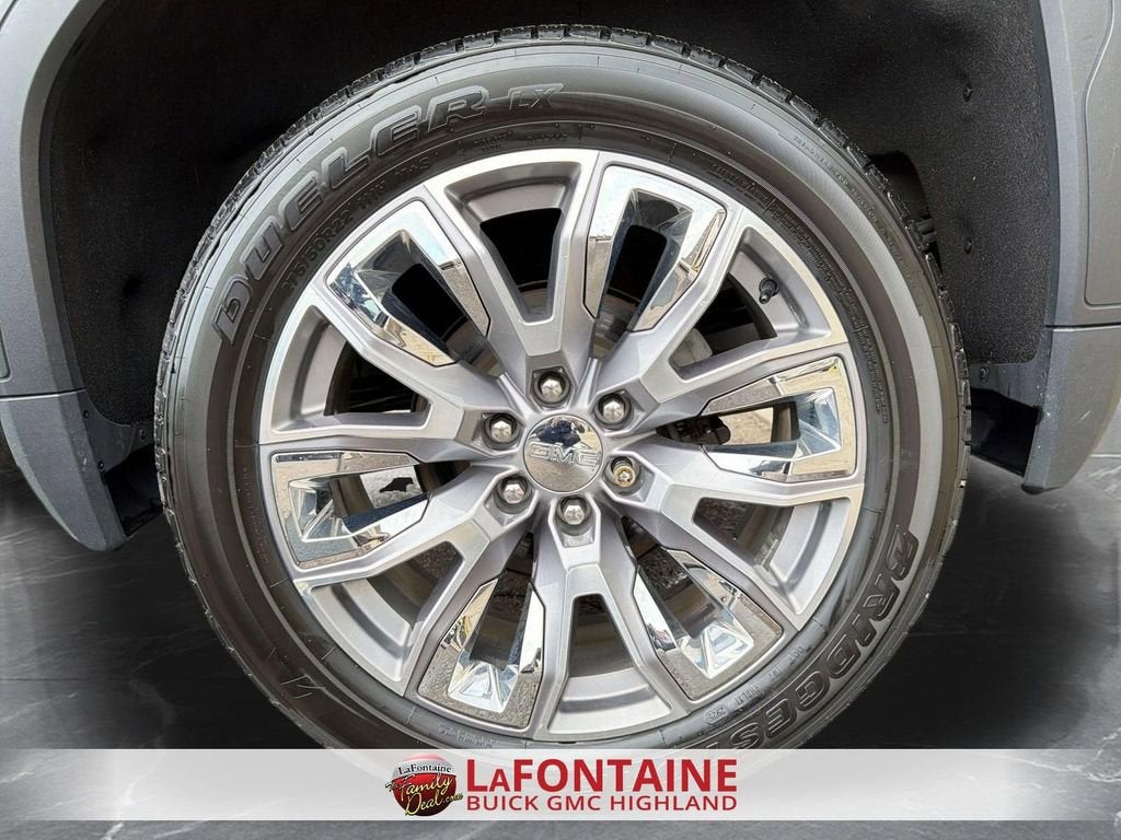 Elevate your driving experience with the Denali Reserve Package, which includes the Technology Package, a sunroof, GMC MultiPro Power Steps, and 22-inch painted aluminum wheels with machining and bright chrome inserts. Indulge in the premium Bose 7-speaker sound system, wireless charging, and the convenience of a 120-volt power outlet.
