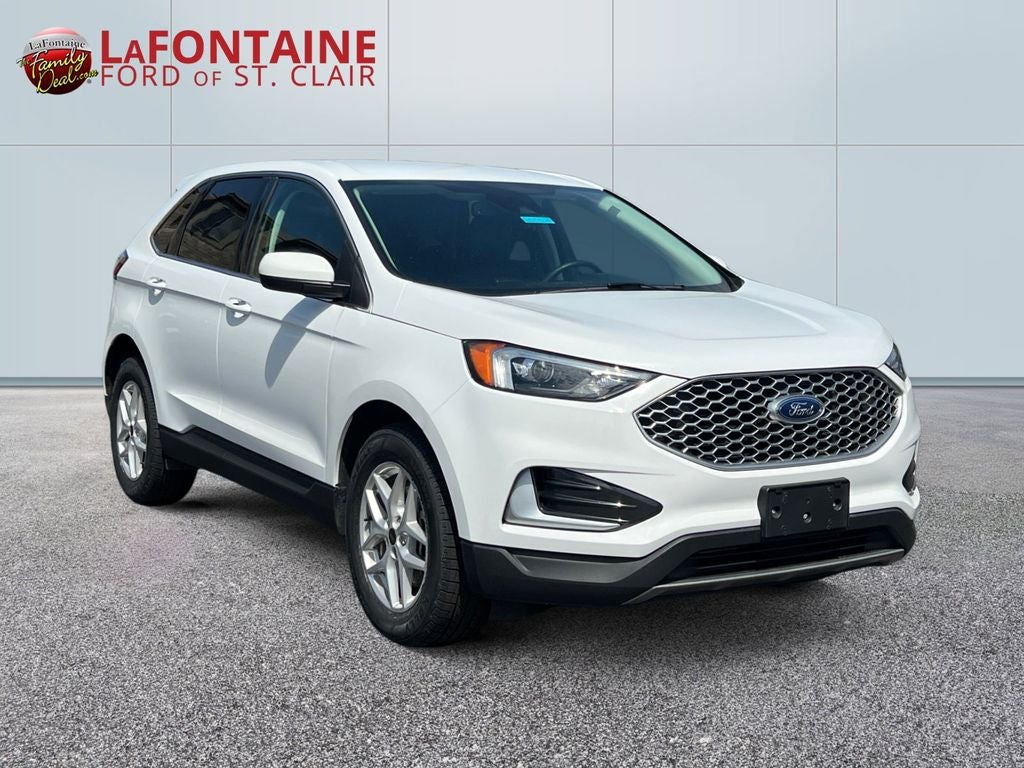 - Enjoy comfort, capability, and modern technology in this 2024 Ford Edge SEL. Finished in classic Oxford White with an Ebony ActiveX-trimmed interior, this stylish SUV offers a refined design with spacious seating for five and the versatility today’s drivers need. Under the hood, this Edge is powered by a responsive twin-scroll 2.0L EcoBoost engine paired with an 8-speed automatic transmission, delivering a smooth balance of power and efficiency. With all-wheel drive, confident handling, and composed road manners, it is ready for changing weather conditions and everyday travel alike. Inside the cabin, comfort takes center stage with heated front seats, an 8-way power driver’s seat, 4-way power passenger seat, dual-zone electronic automatic climate control, and a power liftgate for added convenience. The 60/40 EasyFold rear bench gives you flexible cargo space for groceries, gear, or weekend adventures. Technology is front and center with Ford’s SYNC 4A infotainment system and a large 12-inch touchscreen display. Stay connected with Apple CarPlay, Android Auto compatibility, USB-A and USB-C ports, SiriusXM with 360L capability, and FordPass Connect with available Wi-Fi hotspot functionality. Safety is a priority thanks to Ford Co-Pilot360, offering confidence-enhancing features such as rear parking sensors, rear view camera, auto high-beam headlamps, AdvanceTrac with Roll Stability Control, tire pressure monitoring, and multiple advanced airbag systems. Exterior highlights include LED headlamps with signature lighting, LED taillamps, rear privacy glass, bright beltline molding, and 18-inch split-spoke silver painted aluminum wheels. A mini spare tire adds extra peace of mind on the road. Blending comfort, technology, and all-weather capability, this 2024 Ford Edge SEL is a smart choice for anyone looking for a spacious and well-equipped SUV.