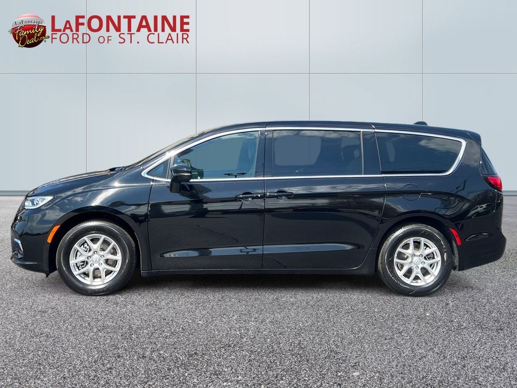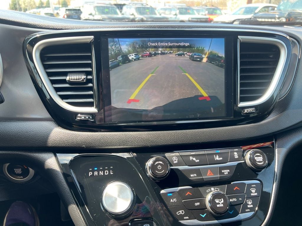- The 2025 Chrysler Pacifica Select is a stylish and family-focused minivan designed to make every drive more comfortable, convenient, and connected. Finished in Diamond Black Crystal Pearl-Coat with a sleek black interior, this Pacifica Select offers a modern and refined appearance inside and out. Powered by a dependable 3.6L V6 engine paired with a smooth 9-speed automatic transmission, it delivers confident performance whether you're commuting, road-tripping, or handling everyday errands. Inside the cabin, you’ll find versatile seating with Chrysler’s renowned second- and third-row Stow ‘n Go® system, allowing you to easily fold the rear seats into the floor for exceptional cargo flexibility. Heated front seats, a heated steering wheel, power-adjustable driver’s seat with memory settings, and tri-zone automatic climate control help keep everyone comfortable no matter the season. The spacious layout and thoughtful storage solutions make it ideal for growing families or anyone needing extra room. Technology is front and center with the advanced Uconnect® 5 infotainment system featuring a large 10.1-inch touchscreen display, Apple CarPlay®, Android Auto™, Bluetooth® connectivity, available Wi-Fi hotspot capability, and hands-free phone and audio controls. Power sliding side doors and a power liftgate make loading passengers and cargo easier than ever, especially when your hands are full. Safety is a standout with features such as Adaptive Cruise Control with Stop and Go, Blind-Spot Monitoring, Rear Cross-Path Detection, Lane Departure Warning, Full-Speed Forward Collision Warning Plus, Pedestrian Emergency Braking, ParkView® Rear Backup Camera, and Rear Park Assist. With its premium comfort, innovative seating, advanced safety systems, and versatile utility, this Pacifica Select is an excellent choice for drivers who need space without sacrificing style.